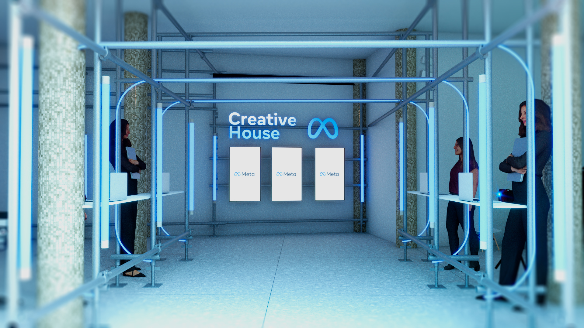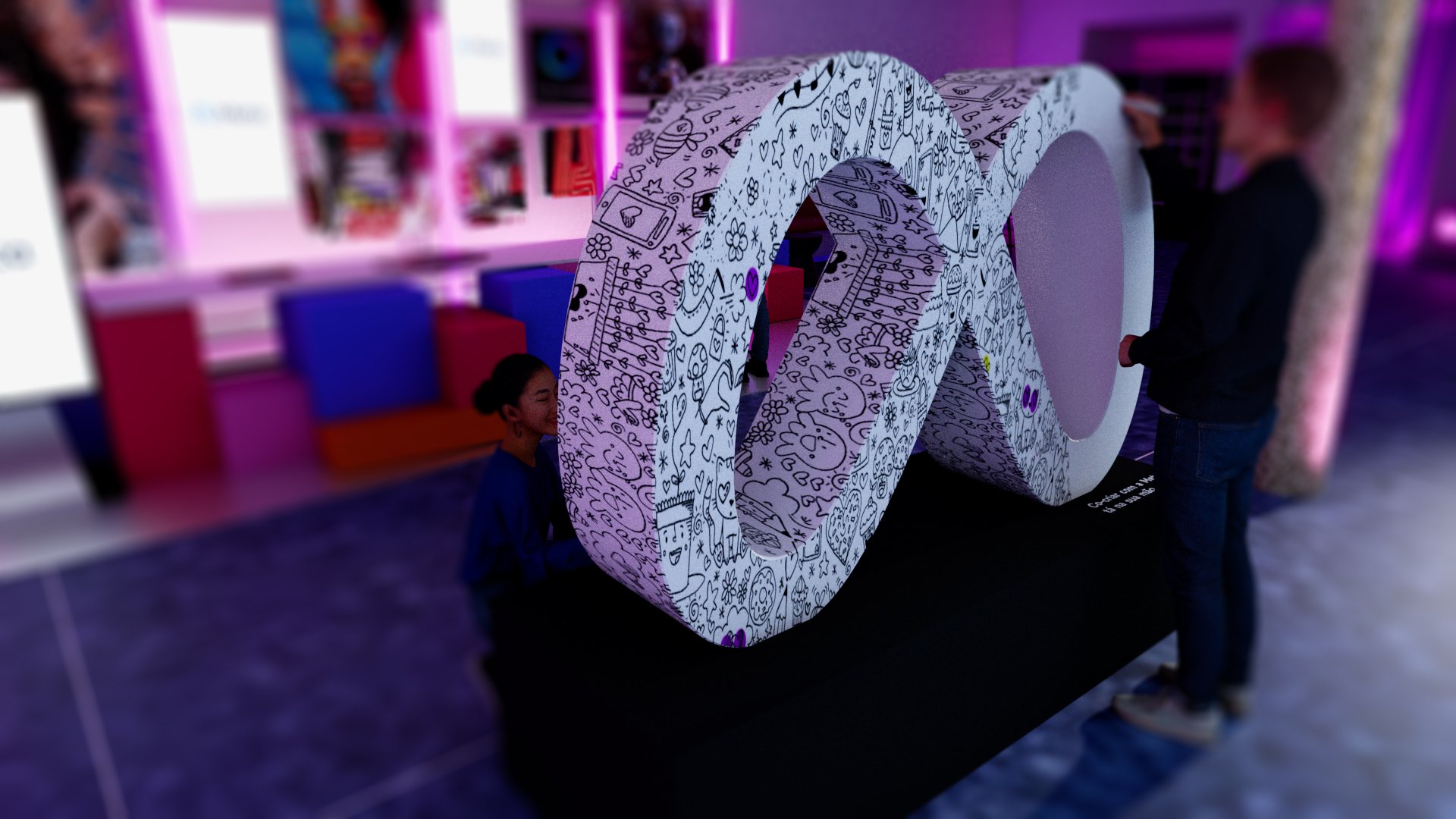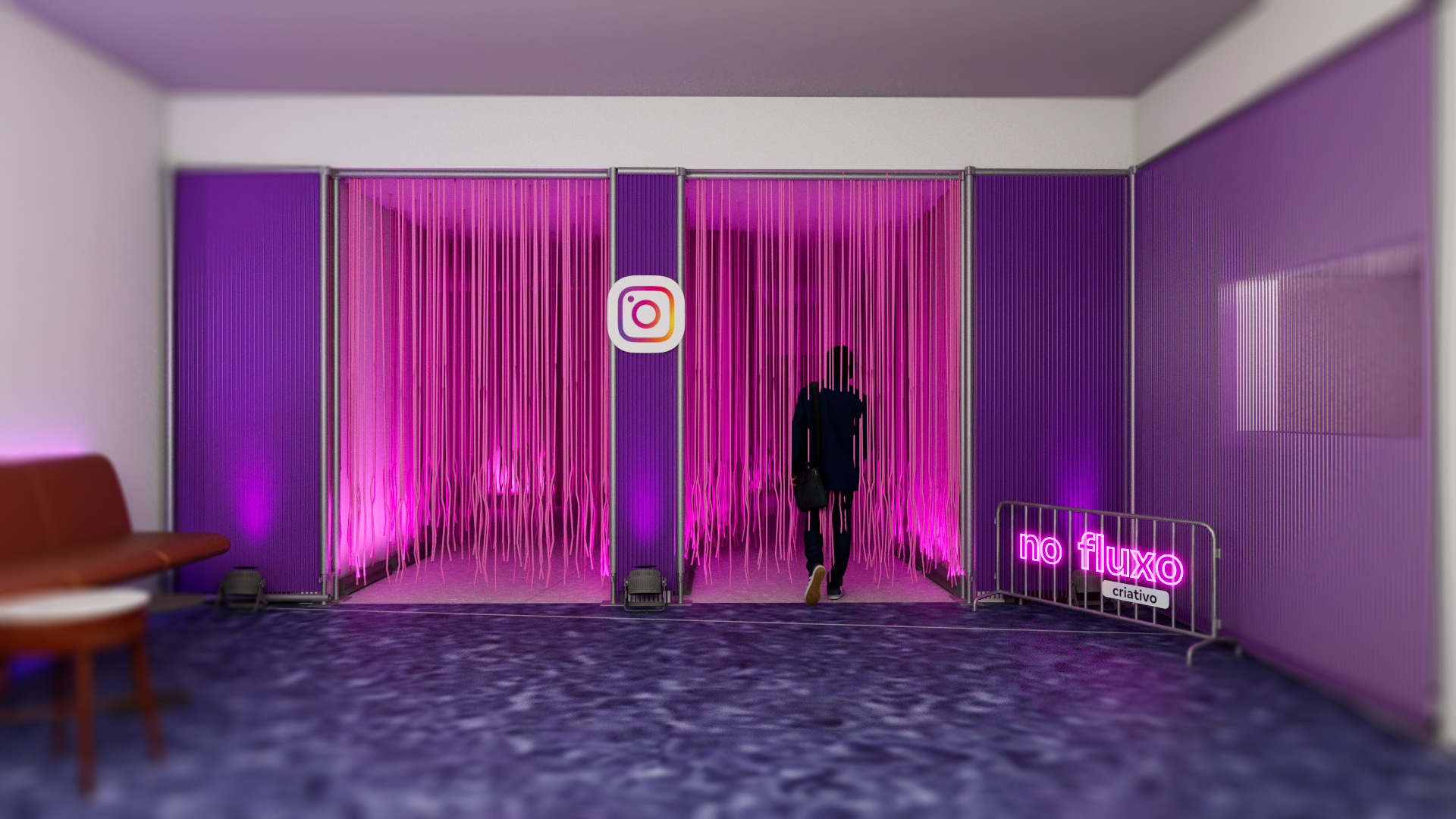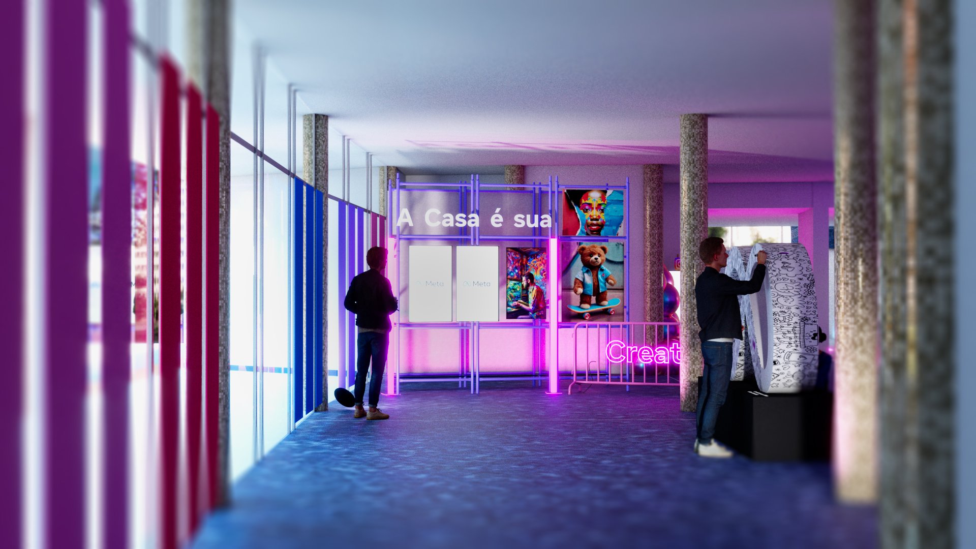 Uma cenografia baseada no "on going", "under construction" apresentando o contraste entre as diversas ativações com IA e as estruturas modulares de construção. criando uma cenografia aspiracional e que conectava publico e marca em torno das mensagens do evento.
